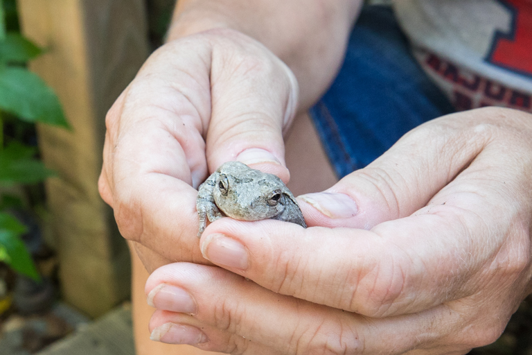 So of course Melanie pulled out the tree frog that lives in a little house on their front porch.